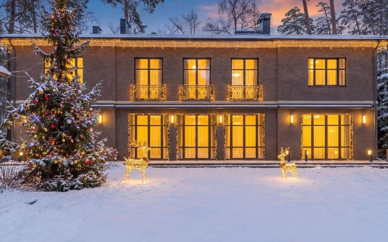 Речь идет о двухэтажном особняке с кинотеатром и винной комнатой в клубном поселке в Усово в Подмосковье. Помимо особняка, на участке есть гостевой дом с баней и беседка-барбекю. Стоимость объекта не раскрывается