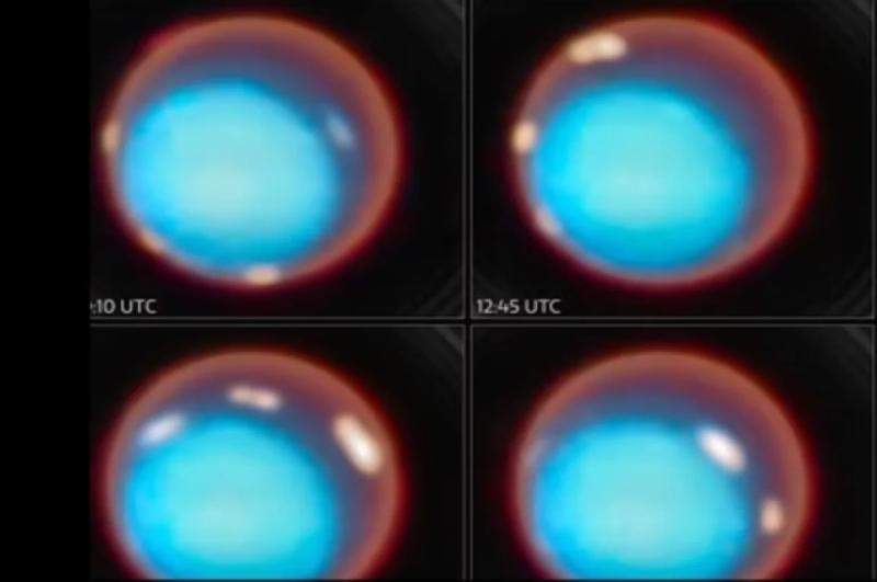 Уточняется, что в ходе наблюдений были обнаружены две яркие полосы полярного сияния вблизи магнитных полюсов Урана, которые смещены и наклонены почти на 60 градусов.
